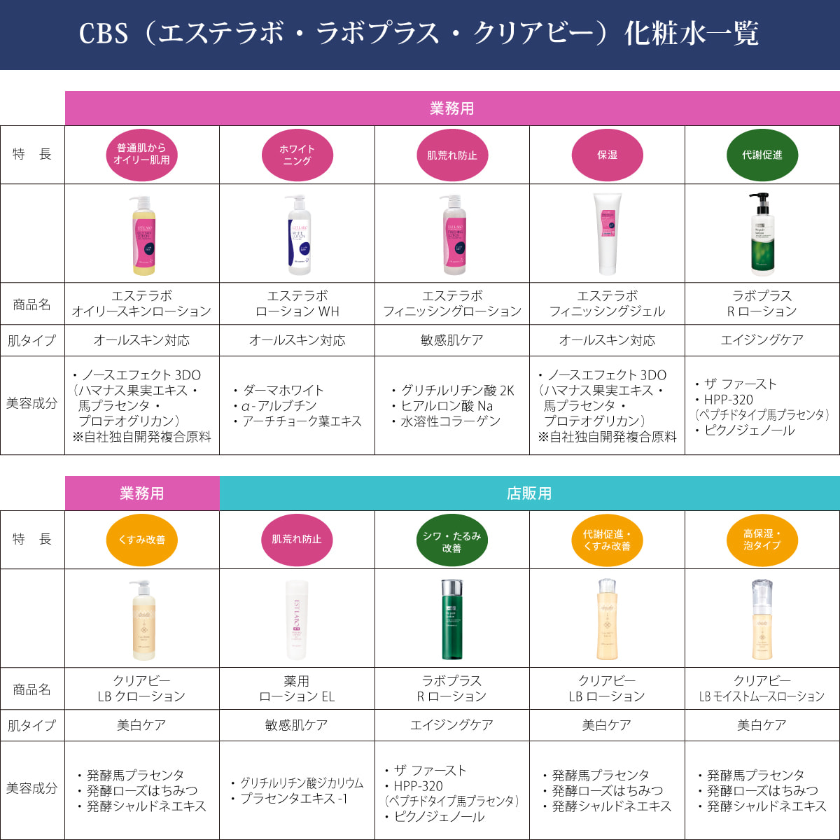 水、プロパンジオール、グリセリン、ジグリセリン、レスベラトロール、サッカロミセス/(黒砂糖/プラセンタエキス)発酵液(ウマ)、シゾサッカロミセス/イチジク果実発酵液、酒粕エキス、乳酸桿菌/ローヤルゼリー発酵液、グルコノバクター/ハチミツ発酵液、乳酸桿菌/ブドウ果汁発酵液、ジラウロイルグルタミン酸リシンNa、オレンジ果皮油、ラベンダー油、イランイラン花油、ビターオレンジ花油、クエン酸Na、PEG-60水添ヒマシ油、BG、エタノール、キサンタンガム、カプリリルグリコール