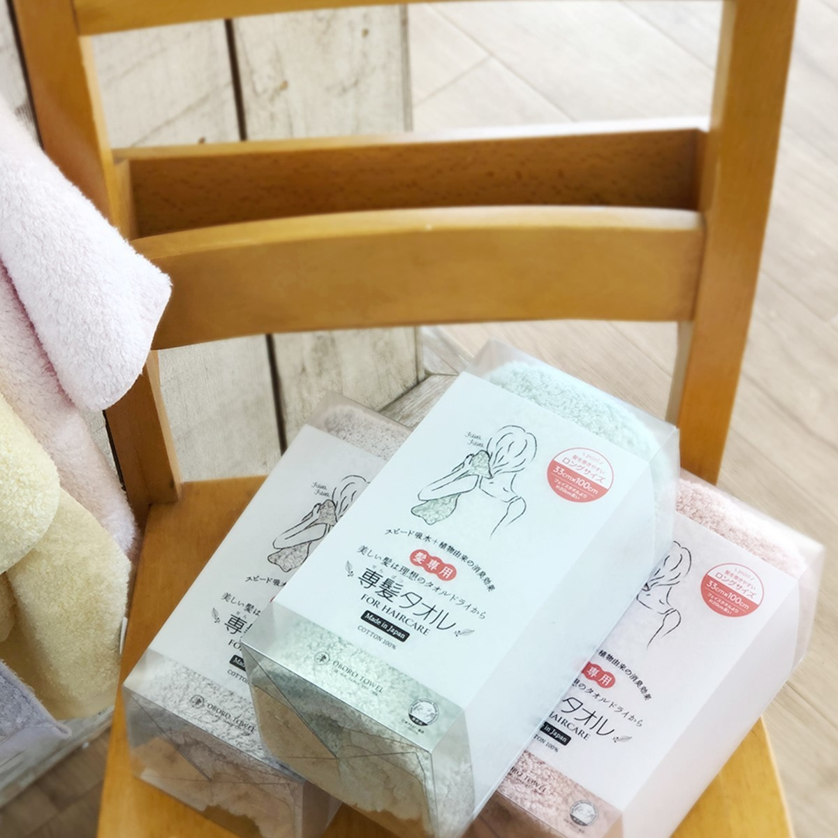 髪を美しく保ちたい女性のために、限りなく髪への負担が少なくなるよう「吸水スピード」と「吸水量」にこだわり、100年の伝統技術と特許申請技術から生まれた髪専用タオルです。